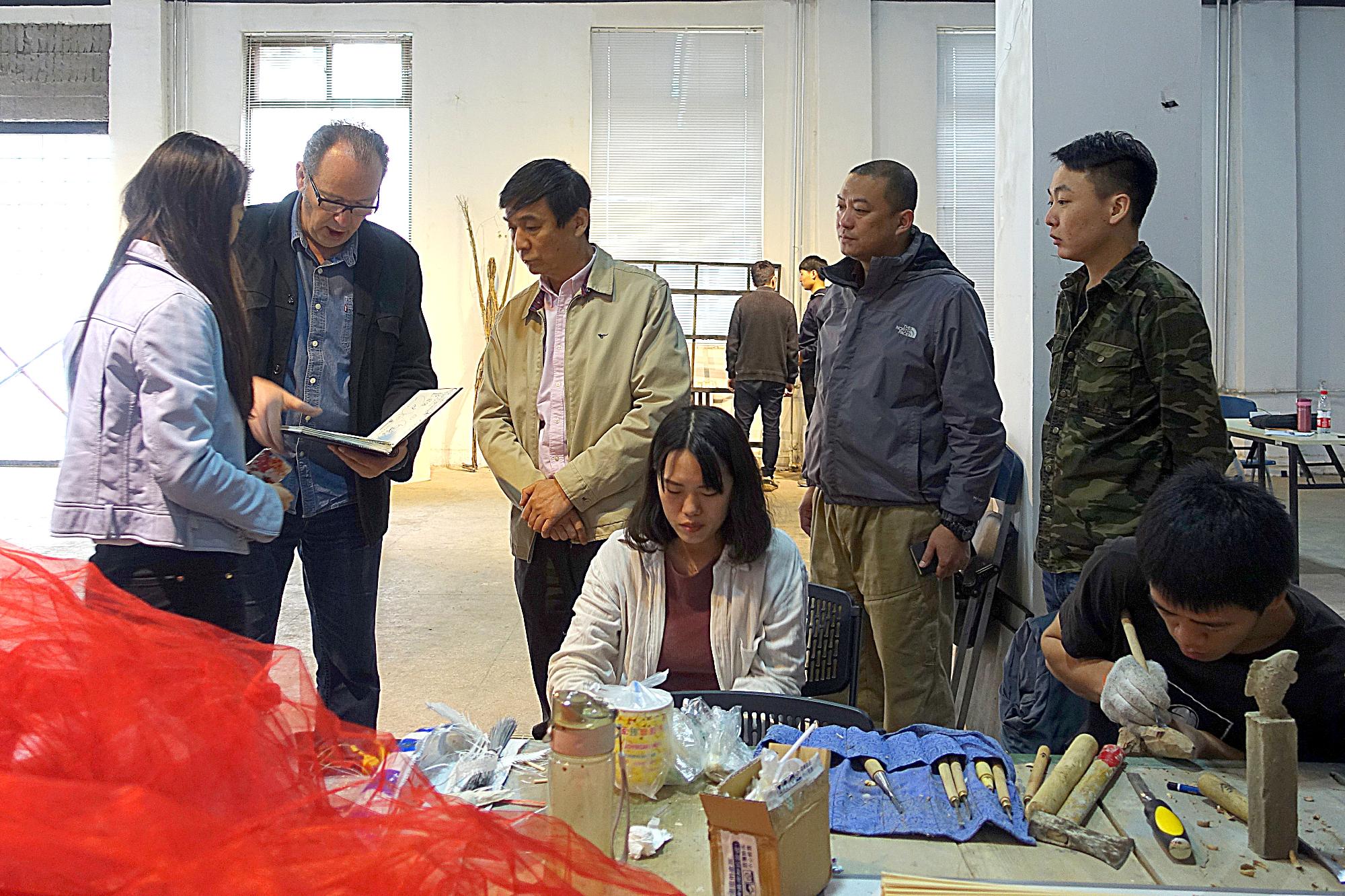 4月26日上午,郭线庐院长来雕塑系对正在进行的国际专家工作室"Mrdjan Bajic工作坊"进行调研。郭线庐院长代表学院向Mrdjan Bajic教授来我院进行授课表示衷心的感谢,高度肯定了塞尔维亚贝尔格莱德大学与我院的合作交流。