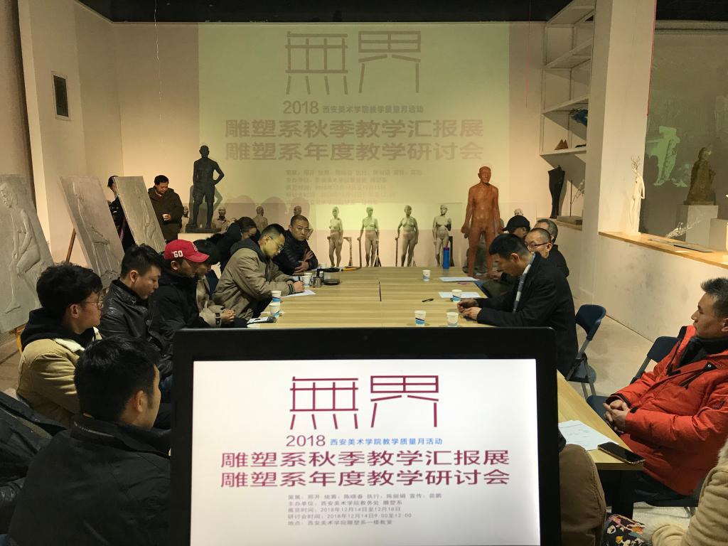 2018年12月14日上午,雕塑系在一楼综合教室举办了秋季教学汇报展及教学研讨会,此次教学汇报展展出了雕塑系各个年级学生优秀雕塑课堂作业、创作作品,是对今年雕塑系教学成果的一次总体展示,显示了雕塑系基础教学、专业改革提升、学术研究、外教课等各方面所取得的成绩。在展示教学成果的同时,结合此次汇报展还组织了教学研讨会,雕塑系全体教师,包括外聘教师参加了研讨会,研讨会还邀请了学院教学督导任焕斌、张立宪两位教授参会,共同针对雕塑系的专业教学进行了研讨交流。