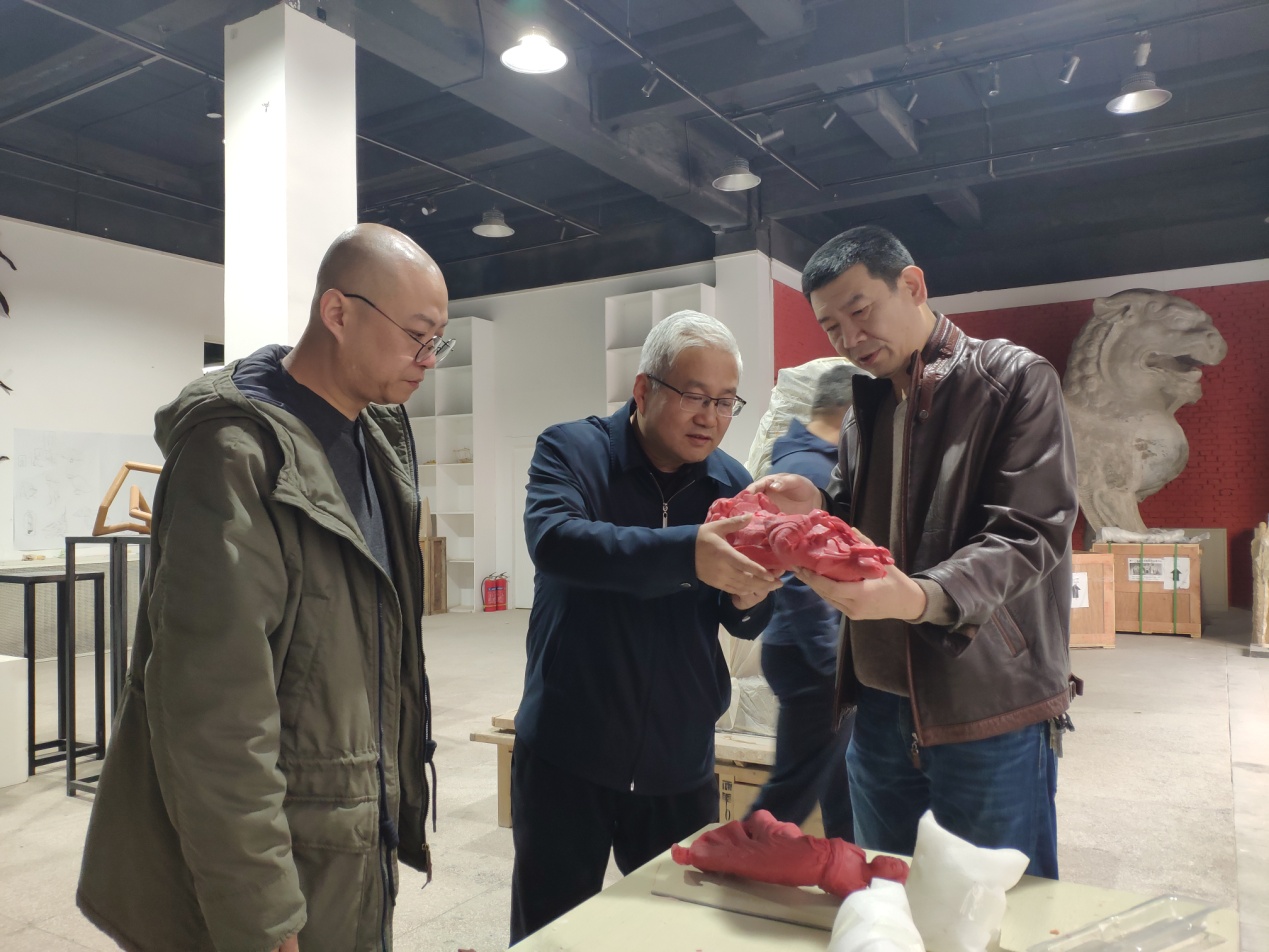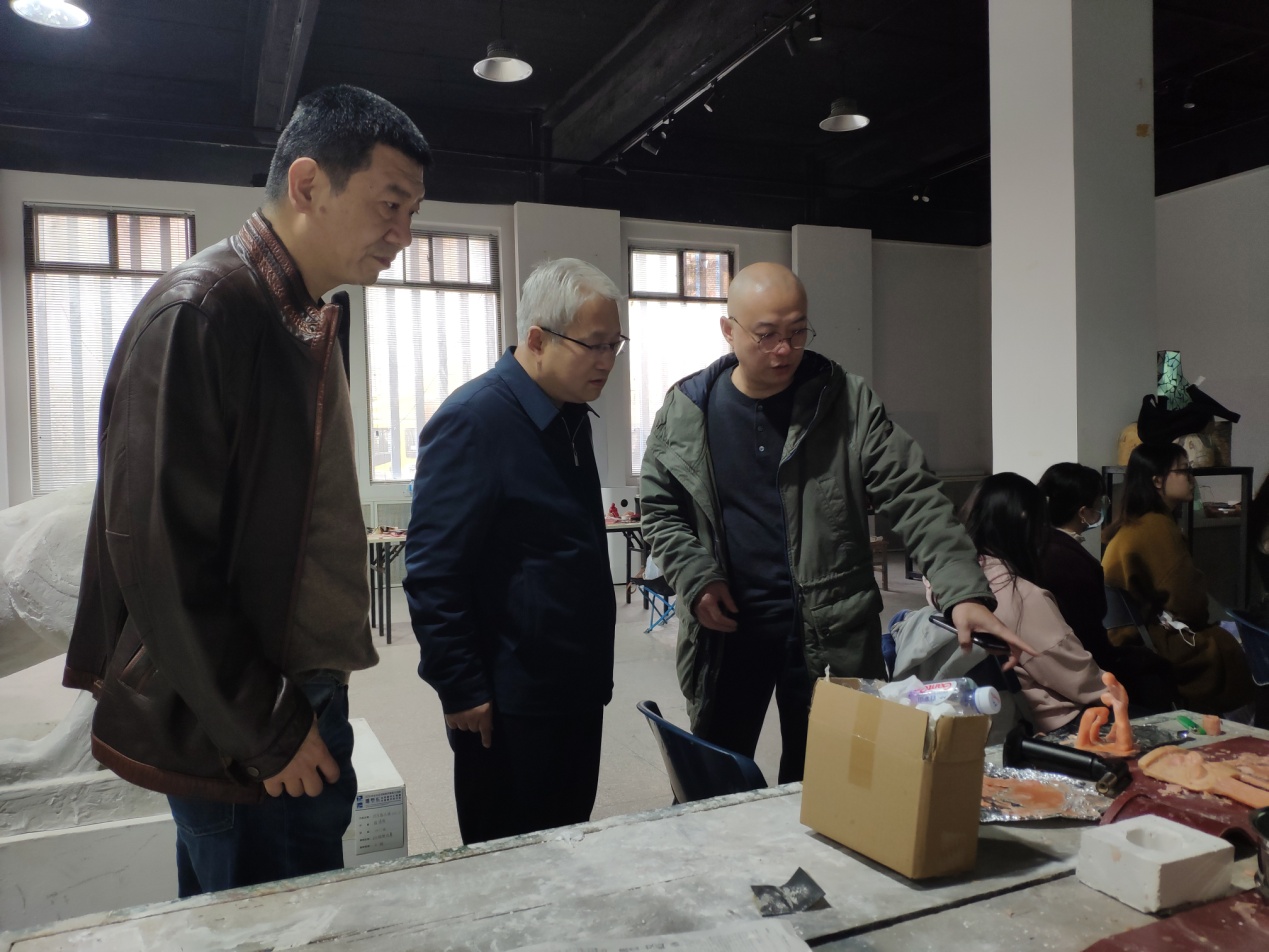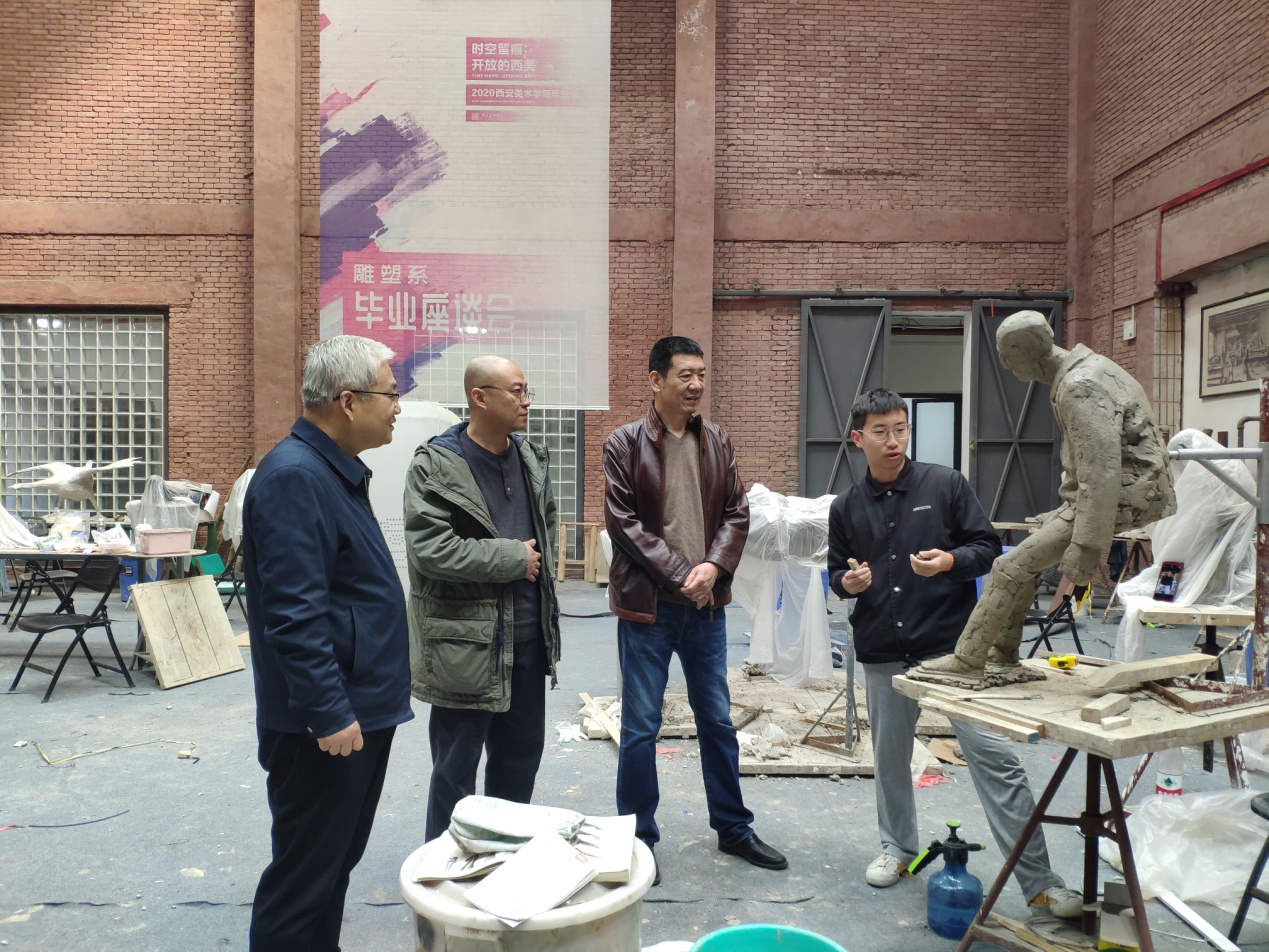 3月24日上午,学院李智军书记来到雕塑系进行走访调研。李智军书记首先到雕塑系各年级教室查看了教学情况,与系领导和代课教师交谈了解教学秩序、教学设施、教师授课的情况,在毕业班教室李智军书记还与正在进行毕业创作的同学进行了交流,查看了学生毕业创作的进展,详细询问雕塑创作的材料制作、学生的创作主题及后续的展陈等情况,勉励大家认真做好毕业创作,拿出优秀作品,展示雕塑系学生的艺术创作能力和风采。在随后的汇报工作中,雕塑系总支书记张耀,系主任陈晓春分别就本学期学生教师的返校上课、课程安排、对学院重点工作的部署及防疫工作等向李智军书记进行了汇报。学院李智军书记对雕塑系的工作进行了肯定并提出了要求,要求大家要在教学上继承学院雕塑系的优良传统,打牢学生的专业根基,坚决贯彻学院的“五名”战略,同时,要抓好党建意识形态工作,在艺术创作中倡导主旋律,结合建党100周年抓好主题创作,发挥雕塑系的教学传统优势,在教学和创作上做出成绩。