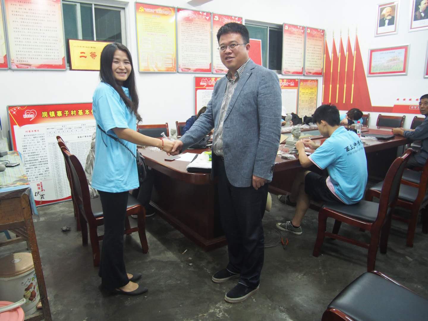 由于天气情况不是很理想,外面下着瓢泼大雨,村里的许多路都变成了泥泞小路,在前往村民家的过程中,甚至有同学摔了跤,但这并不能阻挡同学们的积极性,同学们依然没有怨言,在村委会为几名村代表进行头像塑造,出色的完成了头像塑造任务。看到我们的到来村民们也很积极热情,十分配合我们的工作,对我们的工作给予了高度评价。虽然只待了短短几天,同学们却在活动中体会到了村民浓浓的热情,同时也为村民留下了丰硕的文化成果。