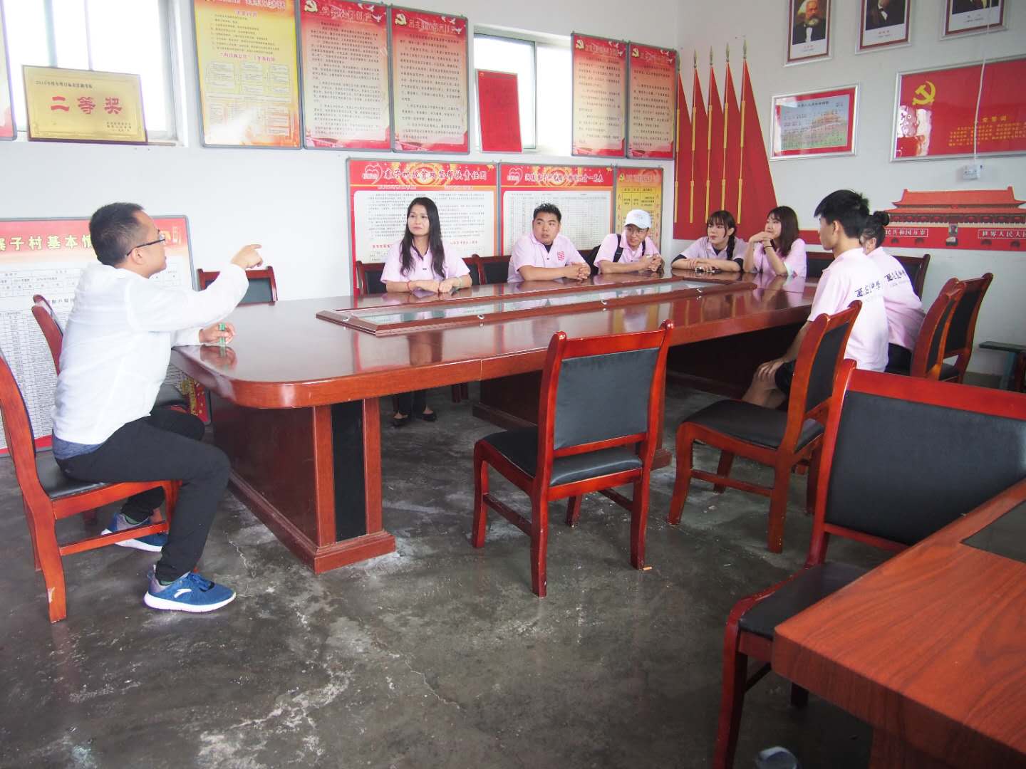 前往目的地之前,在导员的带领下,组织同学采购次日所需材料,进行统筹安排,使工作顺利进行有了基础保障。我们首先与当地村委会主任进行了洽谈,商讨了实践活动的具体事宜,分配了各自的任务,该拍照的拍照,该画画的画画。我们在村委会成员的带领下参观了当地的基础建设和农业生产一线,虽然我们部分同学对当地的方言还是有些不适应,但是在同学们的耐心倾听下和在村委会干部的热心帮助下我们顺利的完成了安排的下乡活动。