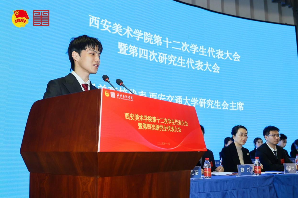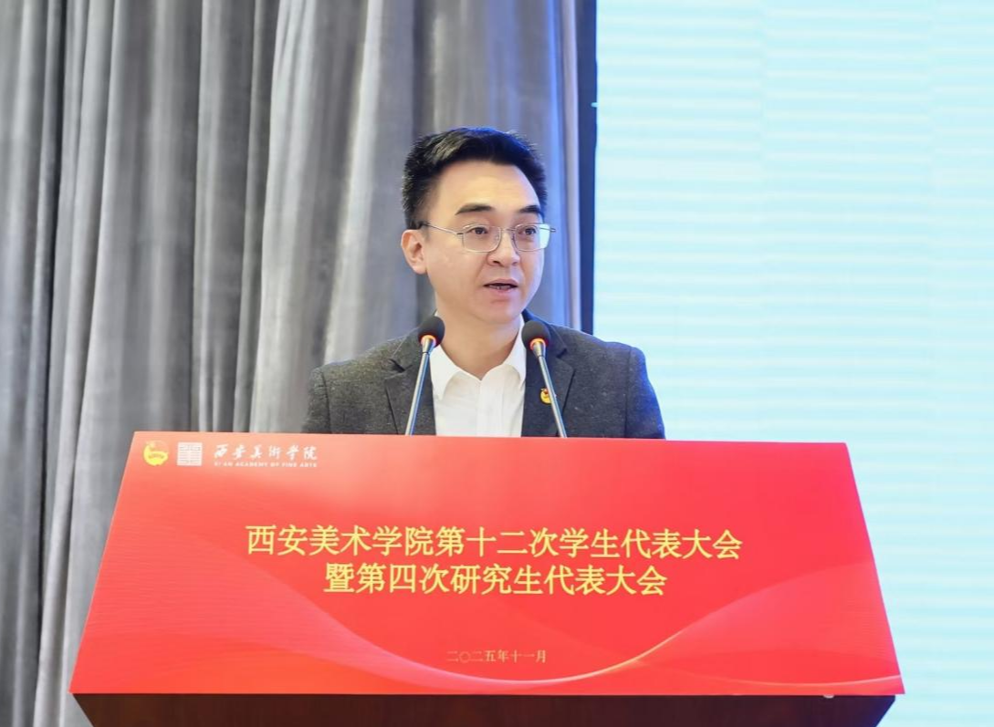 11月28日,西安美院第十二次学生代表大会暨第四次研究生代表大会在雁塔校区美术馆A馆召开。校党委副书记邱必震出席开幕式并讲话。