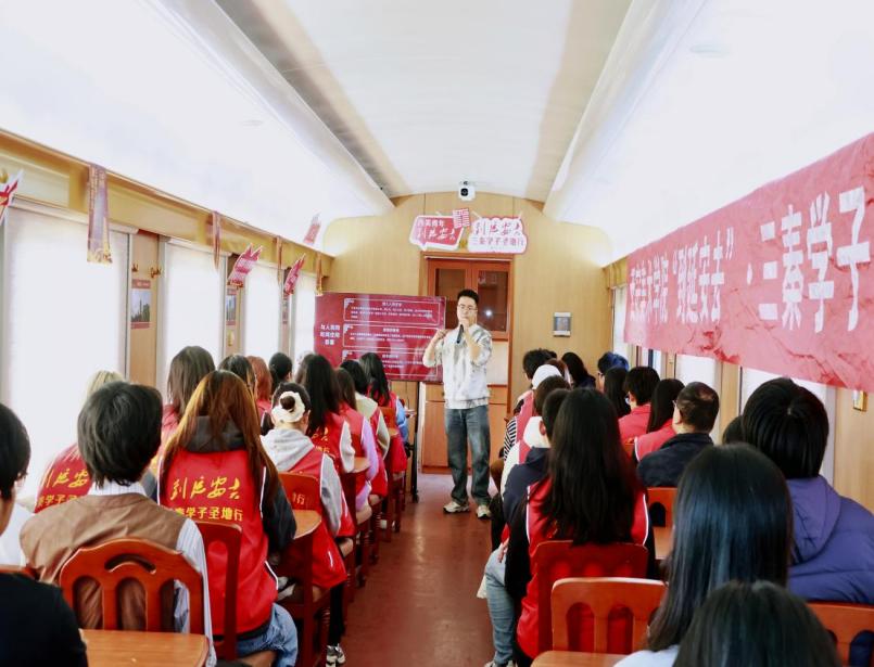 师生在列车上开展思政课