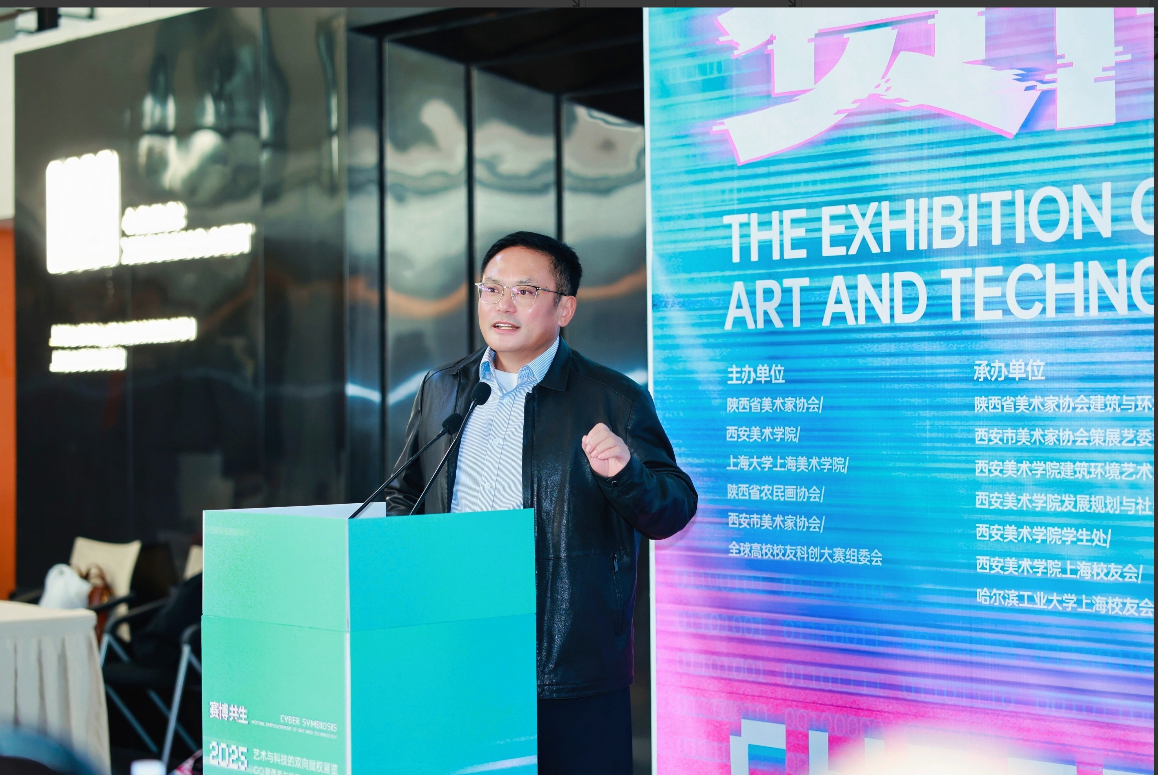 本次“赛博共生:艺术与科技的双向赋权”展览由陕西省美术家协会、西安美术学院、上海大学上海美术学院、陕西省农民画协会、西安市美术家协会、全球高校校友科创大赛组委会共同主办。展览通过前沿作品、主题演讲与跨界对话,构建了一个激发灵感、促进合作的深度交互场域。展览通过“智构·场域”“思辨·赋形”“共创·共振”三个板块,系统呈现艺术与科技如何相互激发、彼此成就,让来自不同背景的创作者、学者和观众,共同参与到这场关于未来的对话中。