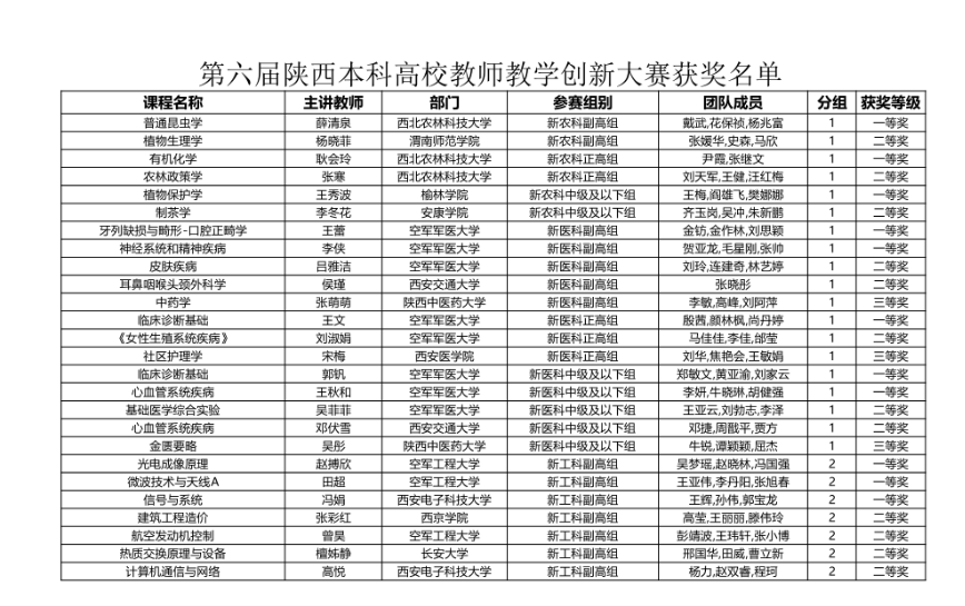 第六届陕西本科高校教师教学创新大赛获奖名单