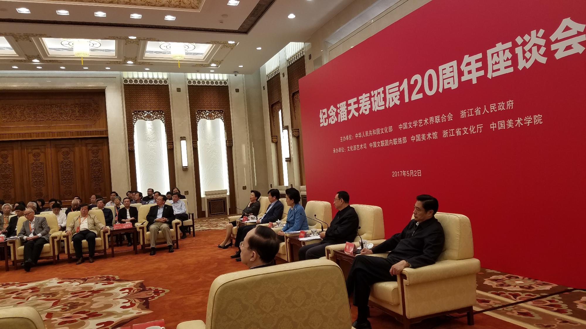 上午,座谈会在北京人民大会堂隆重召开,中央政治局委员,国务院副总理刘延东出席并致辞,全国艺术界代表与潘天寿先生家人莅临会议现场。
