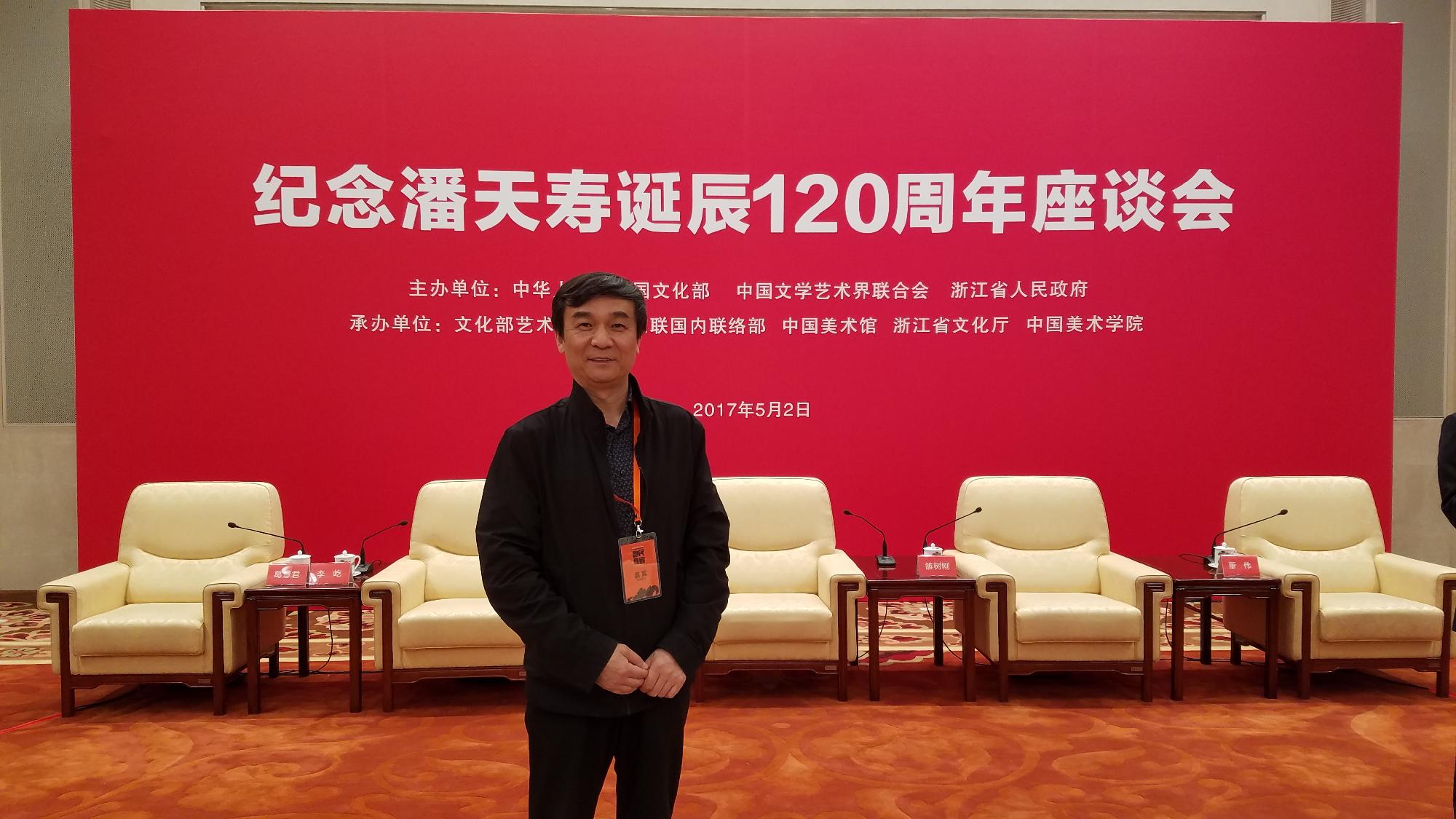 5月2日,在中国画大师、教育家潘天寿先生诞辰120周年之际,由中华人民共和国文化部、中国文学艺术界联合会及浙江省人民政府联合主办,中国美术馆、中国美术家协会、浙江省文化厅和中国美术学院共同联合承办的“民族翰骨:潘天寿与文化自信——潘天寿诞辰120周年纪念座谈会”、“民族翰骨:潘天寿诞辰120周年纪念大展”及“潘天寿与文化自信:潘天寿诞辰120周年学术研讨会”在京举行,西安美术学院院长郭线庐出席纪念活动。