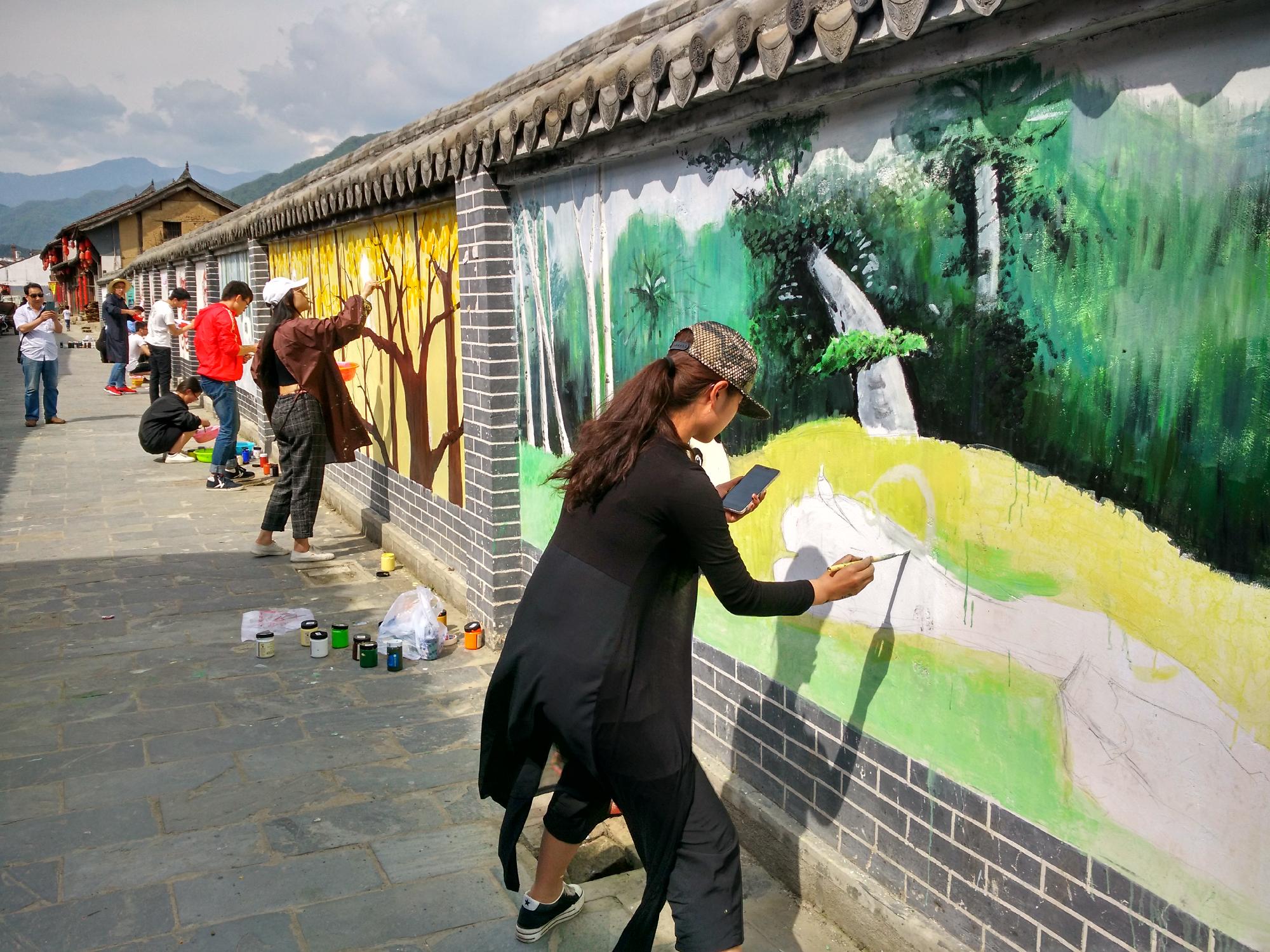 我院团委组织学生为洋县华阳景区进行墙体彩绘