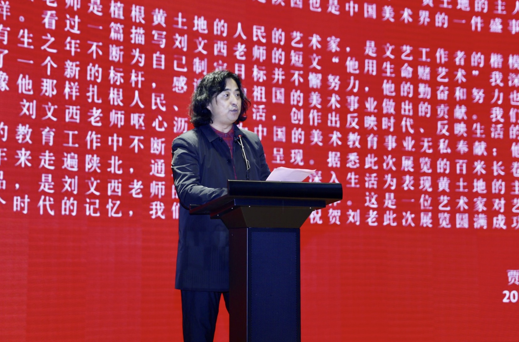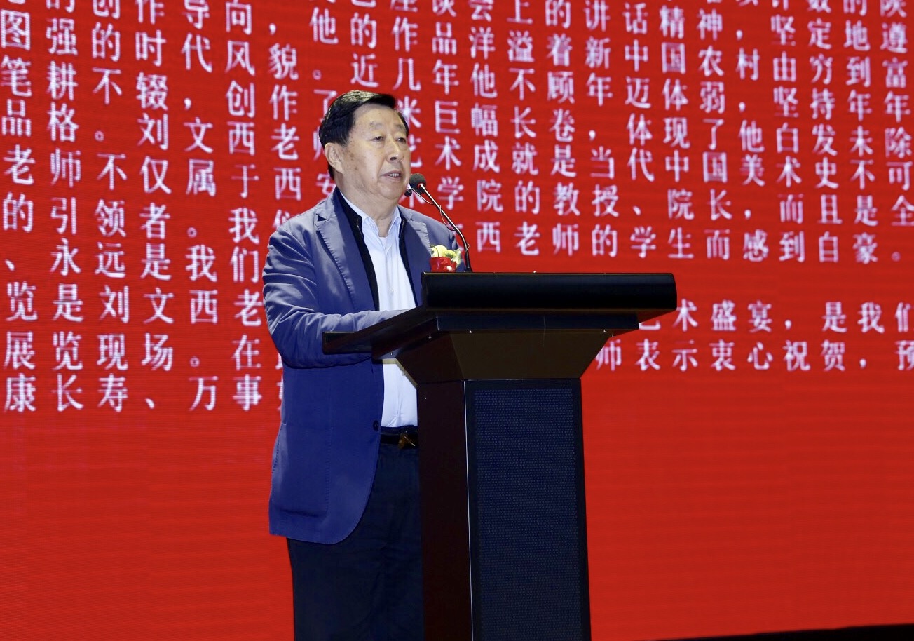 中国国家画院院长杨晓阳在讲话中对刘文西教授的艺术成就给予了高度肯定。他指出,刘文西半个多世纪以来,孜孜不倦、兢兢业业、勤勤恳恳,从未停止过手中的画笔,几乎将全部生命致力于开拓了一个浓墨重彩的“黄土文化”艺术世界,他的艺术精神,就像“黄土地”人民一样,坚韧、积极、乐观,他真真正正的践行了毛泽东延安文艺座谈会讲话精神,更符合习近平总书记提出的社会主义文艺发展理论。