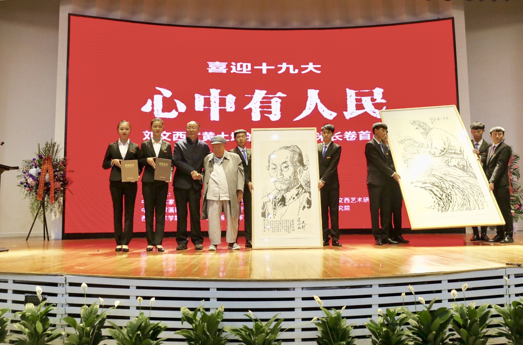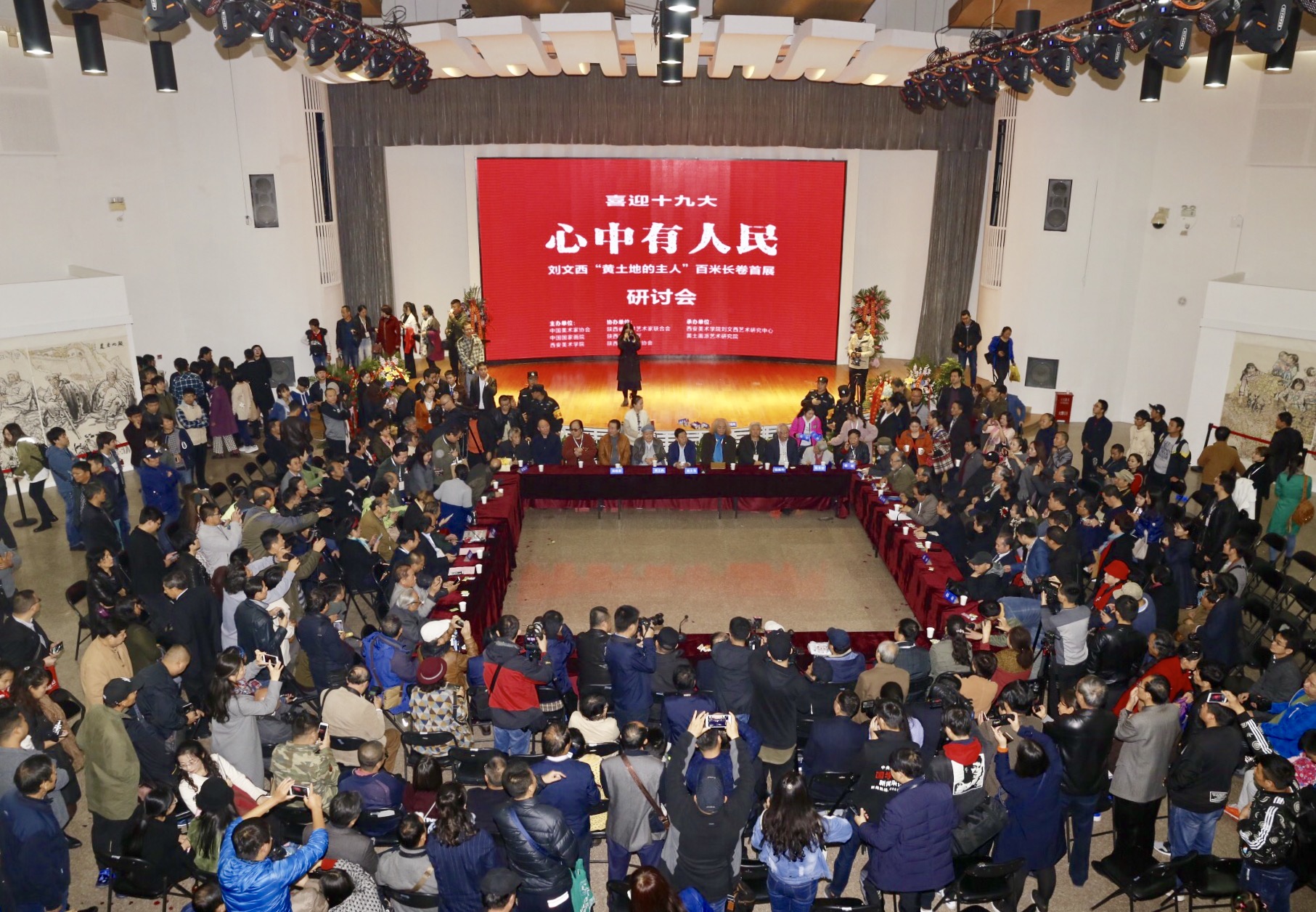 10月15日上午,由中国美协、中国国家画院、西安美术学院、黄土画派艺术研究院联合举办的“喜迎党的十九大‘心中有人民’刘文西百米长卷展”在西安美术学院美术馆隆重开幕。八百余名观众云集展厅,目睹了享誉中国画坛的文西风格——“刘家样”。