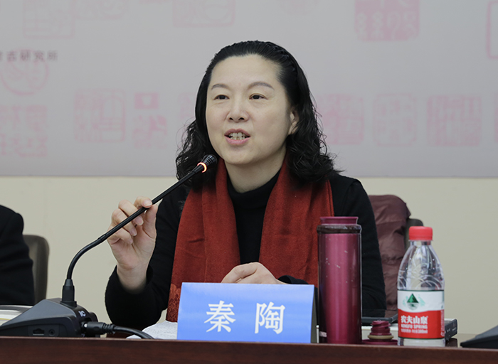 秦陶代表西泠印社致辞,她表示很高兴能够参加此次会议,这是一件封泥研究界的盛事。此次由西泠印社出版社出版的《中国封泥大系》一书,是封泥研究领域的集大成之作,为研究者创造了文献上的便利条件。今年是西泠印社创社115年,作为社庆系列活动之一,西泠印社联合山东九宫阁齐国文字博物馆、平湖玺印篆刻博物馆成功举办“临淄新见战国两汉封泥展”。《西泠艺丛》作为西泠印社唯一核心社刊,始终秉持学术立刊的宗旨,艺丛编辑部作为协办方之一,计划将此次研讨会的学术成果编辑专题出版,既是对本次研讨活动的大力支持,也是对本次活动的延伸宣传。今后也希望与各学术单位和在座的各位专家广泛开展学术研讨与交流。