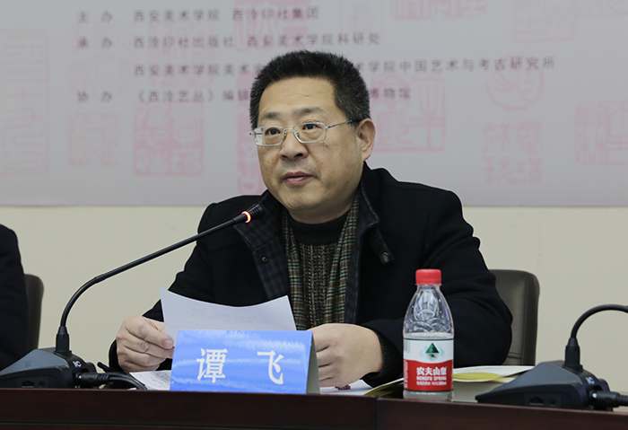 在随后的举行的“中国古代封泥学术研讨会”期间,院党委书记王家春专程赶到,表达了西安美术学院对各位专家的尊敬和对这次会议的重视。他认为,封泥和印章是不同于西方的,具有中国独特审美的艺术载体,西安美术学院在周晓陆教授的带领下在此领域已经取得了较好的研究成果,今后在各位专家学者的支持下将继续为封泥研究贡献学术智慧;同时,他还希望与会的各位专家学者以此次会议为契机,加深对西安美术学院的了解,今后在封泥学术研究之外,还可依托学院的院藏古画、文物等进一步展开书画、文物等方面的学术交流研讨。