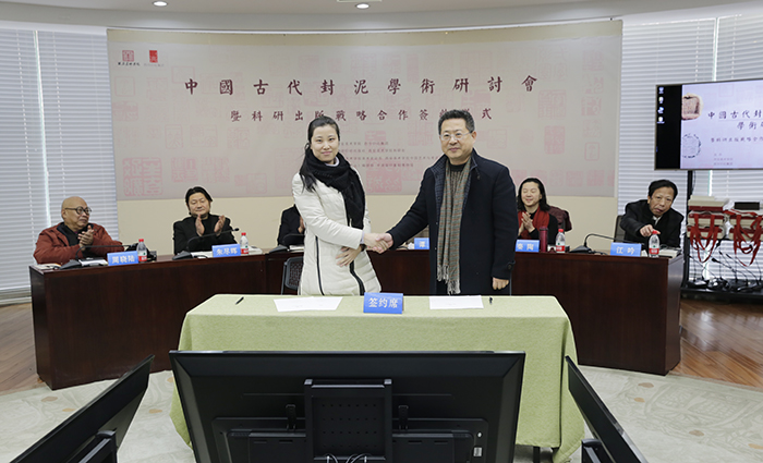 “中国古代封泥学术研讨会暨科研出版战略合作签约仪式”于12月21日在我院举行。此次活动由西安美术学院、西泠印社集团主办;西泠印社出版社,西安美术学院科研创作处、美术史论系、中国艺术与考古研究所承办;《西泠艺丛》编辑部、平湖玺印篆刻博物馆协办。西安美术学院党委副书记任晓峰,副院长朱尽晖,西泠印社集团党委副书记、总经理谭飞,西泠印社党委委员、社委会副主任秦陶,西泠印社出版社社长、理事江吟出席了活动,我院党委宣传部、科研创作处、史论系负责人,《西泠艺丛》相关负责人,以及近五十位专家学者参加了活动。