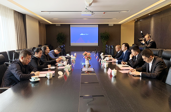 马忠科董事长向朱尽晖院长一行介绍了西安教育城股份有限公司“教、产、城”全系教育产业模式,和交大附中航天学校发展建设情况,并就积极推进双方合作办学阐述了观点和意见。