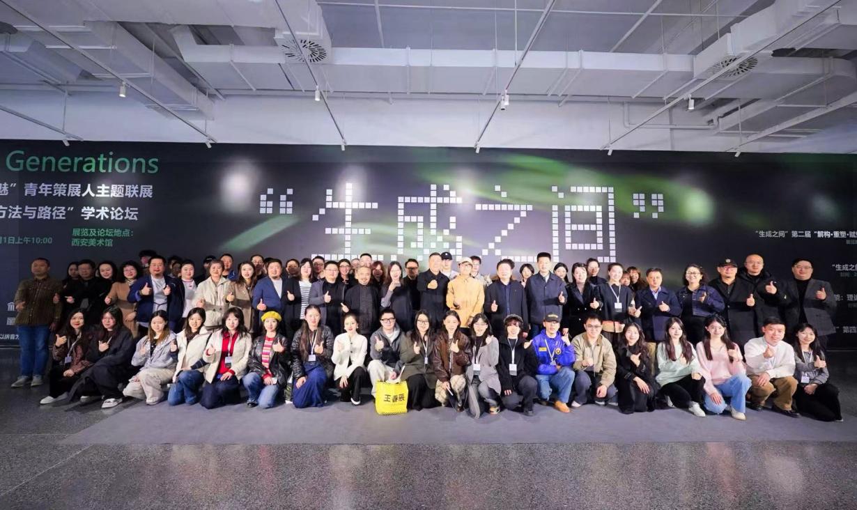 本次活动由中国艺术管理教育学会担任学术指导,西安美院主办,西安美院学科建设办公室、艺术人文学院与西安美术馆承办,陕西省美术家协会策展委员会、西安市美术家协会策展委员会支持,全国十所高等美术院校艺术管理系协办。展览暨论坛以“生成之间”为主题,邀请了来自全国重点专业美术学院的青年艺术家、策展人,以及理论研究者、教育实践者等众多专家学者齐聚一堂,共同探索人工智能深度介入艺术展览策划的经验,构筑人类审美感知与AI技术逻辑之间充满张力的创意空间。青年策展人团队通过场景交互带动思想交汇,凝聚精神、创新观念、交换能量、重构世界,完成自我淬炼和整体升华,以艺术的洪荒之力智联全球、融创未来。