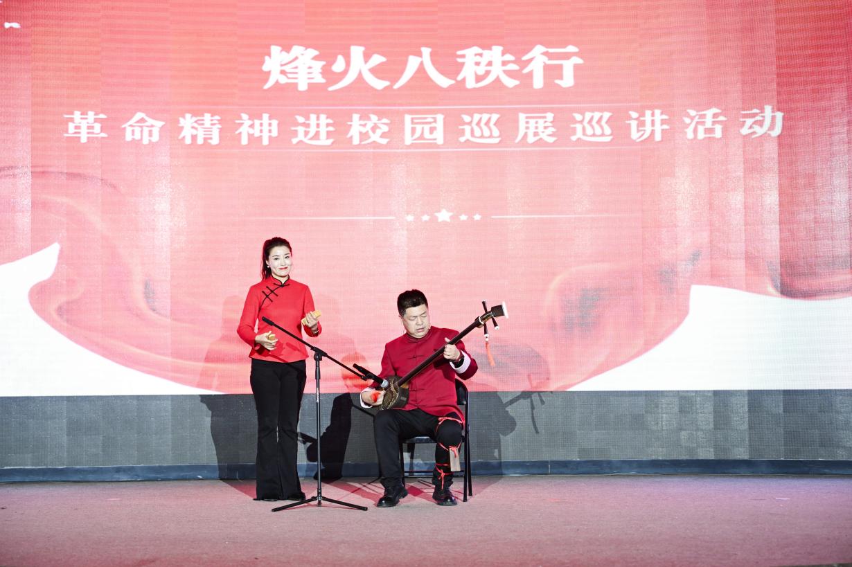 活动突破传统宣讲模式,创新运用红色情景剧、情景讲述、舞蹈歌曲、陕北说书等鲜活表达形式,将革命文物故事、烽火历史记忆转化为高校思政教育素材。活动现场气氛庄重而热烈,一个个承载着革命记忆的文物故事、一段段凝聚着初心使命的红色篇章,让在场师生接受了一场深刻的精神洗礼。活动最后,全场师生合唱《歌唱祖国》,激昂的旋律回荡在校园上空,表达了青年学子对祖国繁荣昌盛的美好祝愿,也为本次巡展巡讲活动画上了圆满句号。