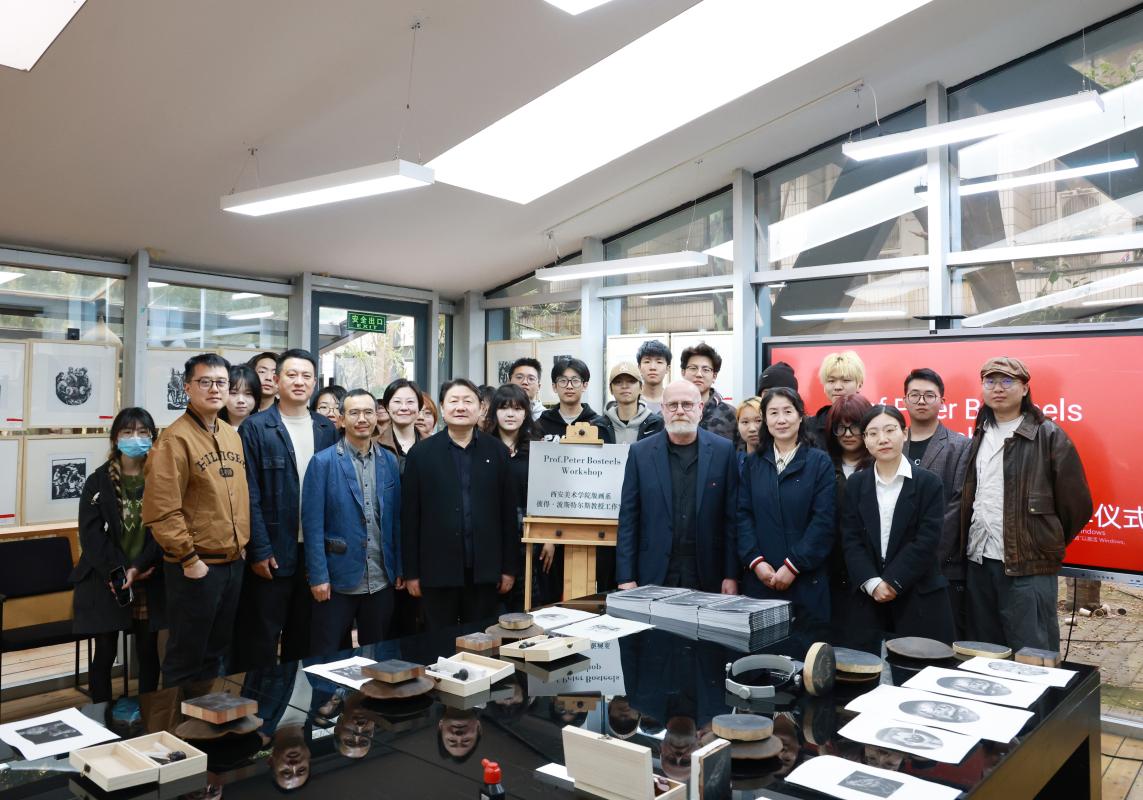 4月2日,彼得·博斯蒂尔教授工作室授牌仪式在学校版画系国家级实验室举行。院长朱尽晖、比利时安德卫普皇家艺术学院版画系主任彼得·博斯蒂尔出席揭牌仪式。
