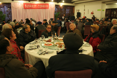 元月26日晚,学院党政领导班子特地邀请我院广大离退休教职工参加新春茶话会,有100多位离退休教职工应邀参加。大家欢聚一堂,共叙情谊,欢度佳节。院党委书记朱恪孝,副书记王晓,副院长郭线庐出席茶话会。党办、院办、组织、人事、院工会和离退办等行政部门主要负责人参加了茶话会。朱书记在宴会中讲话,向大家介绍了学院在过去一年里,各项工作所取得的成绩,为大家送上最美好的新春祝愿,并代表学院党政领导班子对离退休教职工不遗余力地支持和关心学院发展表示衷心感谢。朱书记在讲话中表示,2011年是“十二五”的开局之年,也是我院抓发展的关键一年,但对于离退休教职工,学院党政会在抓建设的同时,会着力营造在政治上尊重、思想上关心、生活上照顾、精神上关怀老同志的良好氛围,希望大家继续发挥自己的光和热,一如既往的关心和支持学院的发展建设,齐心协力把我们的校园建设的更和谐、更美好。在宴会进行中,辅导员王丽彬和临潼校区声乐教师登台演唱助兴,杨建兮等离退休教职工也即兴登台演出,歌曲、秦腔和说唱交相呼应,整个茶话会气氛热烈,其乐融融。