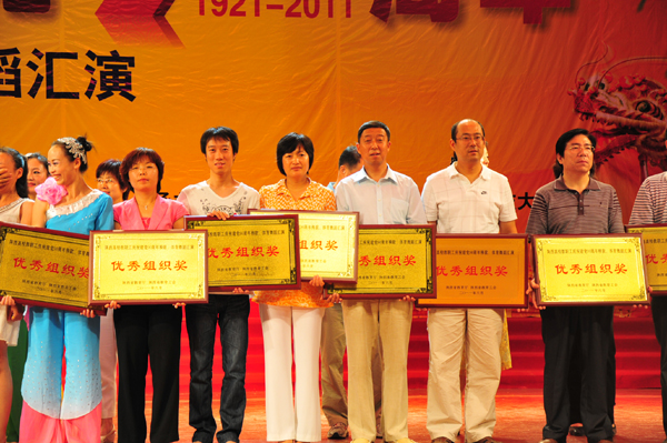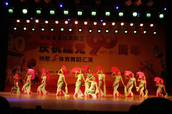 2011年6月13日、14日,由省教育厅、省教育工会联合举办的“陕西省高校教职工庆祝建党九十周年秧歌、体育舞蹈汇演”在西安电子科技大学活动交流中心礼堂隆重举行,全省共有43所高校参加了展演,我院代表队于6月14日下午参加了演出并荣获了“优秀组织奖”及“优秀展演奖”,“优秀展演奖”为本次展演的最高奖项。我院代表队由院工会常务副主席杨宏民领队,院党委副书记、工会主席王晓亲临演出现场为教职工鼓劲、加油并和其他高校领导一起观看了演出。