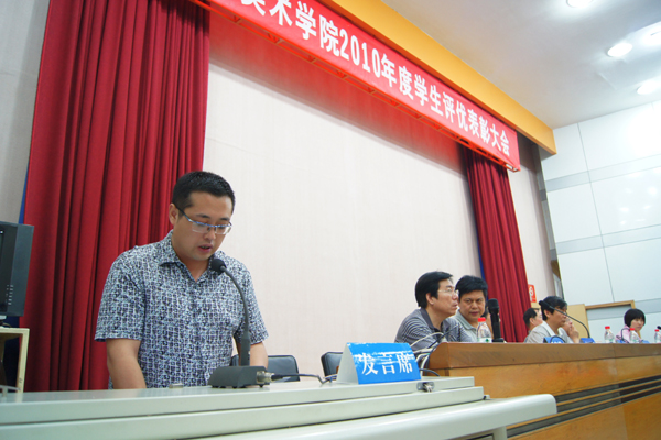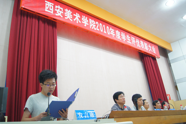 首先,副院长郭线庐宣读了“关于对2010年度学生各项评优进行表彰的决定。 随后,学院对先进团总支、先进学生分会、校园文化活动先进集体及国家奖学金、院级三好学生等奖项的获奖集体和个人进行了表彰。 获奖集体代表设计系团总支书记刘通、获奖学生代表艺术教育系08级学生赵哲超分别发表了获奖感言,表达了对各位领导和老师衷心的感谢与诚挚的敬意,并表示要积极进取、不懈奋斗,争取更大的成绩。 院党委副书记王晓做了总结讲话,对此次所有受表彰的集体和个人表示热烈的祝贺,对我院2010年度学生工作进行了回顾和总结,他表示,此次受到表彰的先进集体和优秀学生,代表我院学生班级和广大同学的主流,集中体现了西美学子积极进取、立志成才的理想抱负。 希望全院同学向他们学习,以他们为榜样,珍惜大学美好时光,合理规划大学生活,为自己人生理想的实现做好准备,打好基础。也希望受到表彰的先进集体和优秀学生谦虚谨慎,戒骄戒躁,珍惜荣誉,正确对待过去的成绩,以更高的标准严格要求自己,争取更大的成绩并带动其他同学一道进步。他还要求全院广大同学认真贯彻落实胡锦涛总书记在清华大学建校100周年大