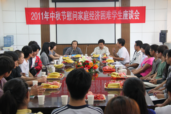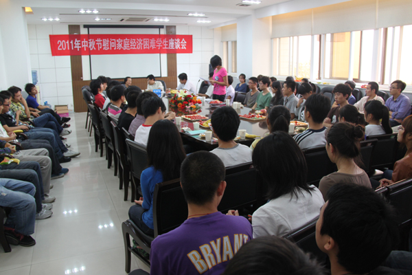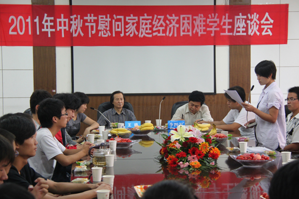 中秋节前夕,为使我院家庭经济困难学生感受到学校的关怀,9月8日下午,我院在四楼会议室召开了中秋节慰问家庭经济困难学生座谈会。院党委副书记王晓、学生处处长李四军出席了座谈会,学生处资助管理中心全体人员、各系家庭经济困难学生代表六十余人出席了本次座谈会,会议由学生处副处长周园老师主持。