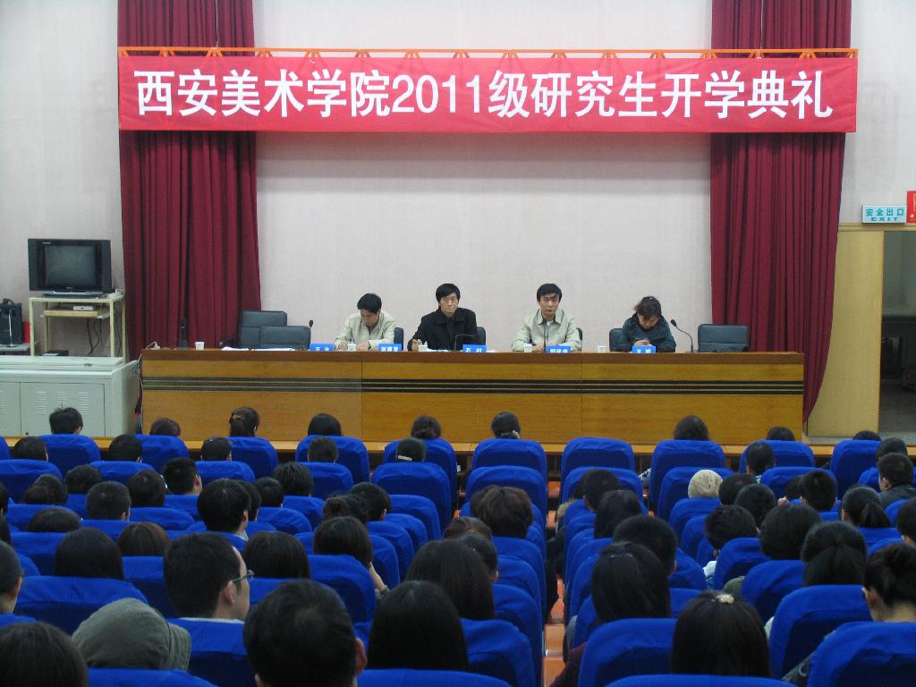 2011年9月19日上午,西安市美术学院2011级研究生开学典礼在主楼一层多功能厅隆重举行。主管研究生教育的副院长郭线庐教授、研究生处处长石村教授、全处老师及2011级博士研究生、全日制学术型研究生、全日制专业学位研究生、艺术硕士(MFA)专业学位研究生共计180余人参加了此次开学典礼。
