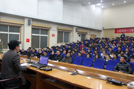 11月29日晚,我院“传统文化进校园”系列讲座第八讲在主楼学术报告厅举行。西北大学副校长、博士生导师李浩教授作了主题为《人文何以成化——国学教育的现状与前景展望》的学术讲座。院党委书记朱恪孝与广大师生一起聆听讲座。讲座由党委委员、组织部部长史军强主持。