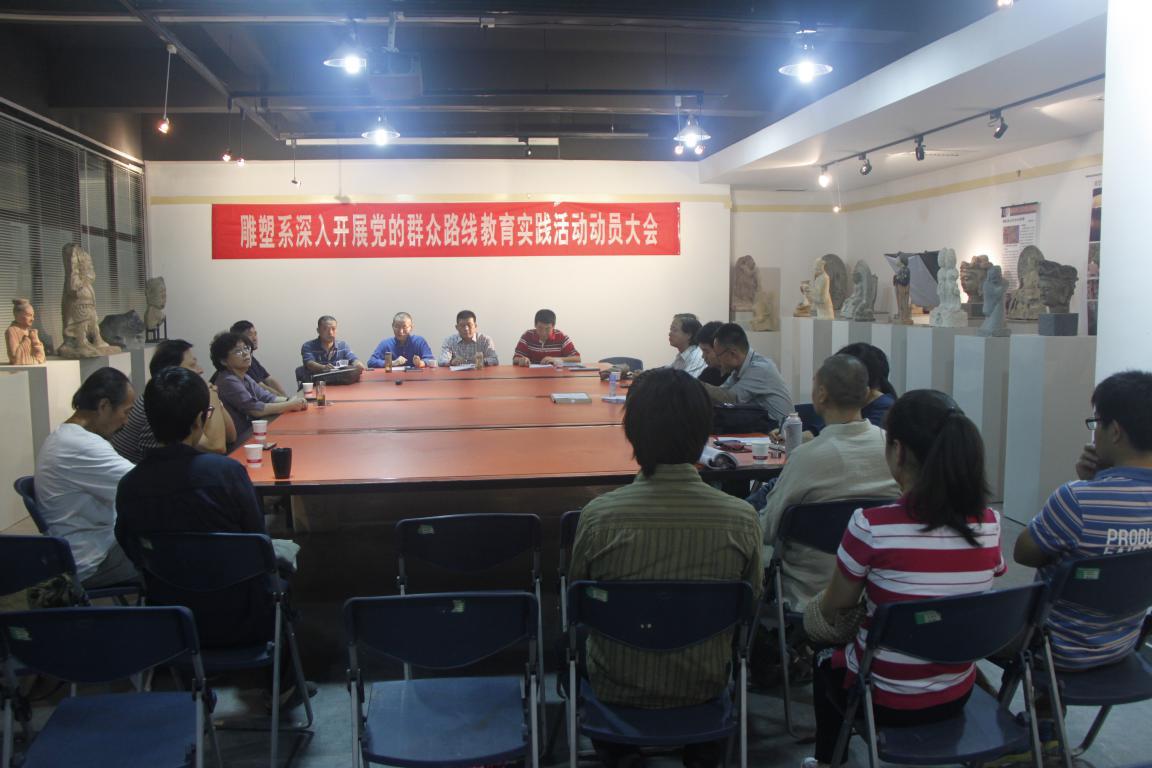 雕塑系教育实践活动动员会议传达了院党委朱恪孝书记在学院党的群众路线教育实践活动动员大会上的讲话,并宣读了《中共西安美术学院委员会深入开展党的群众路线教育实践活动实施方案》。具体部署了雕塑系教育实践活动学习安排。