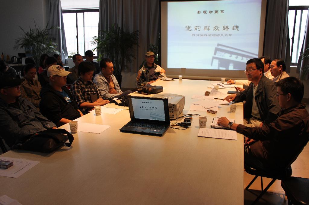 会上影视动画系负责人传达了学院党的群众路线教育实践活动动员大会会议精神,宣读了《影视动画系深入开展党的群众路线教育实践活动实施方案》,具体部署了影视动画系教育实践活动学习安排。要求在群众路线教育实践活动开展过程中,影视动画系要紧抓“三风”建设,科学管理,改进工作作风。以作风促教风,以教风带学风。立德树人,培养智性公民。打造影视动画系管理科学、专业一流、服务贴心的育人团队。实现“办好人民满意教育”的根本目标,为学院“高水平、有特色”的美术院校建设提供支撑。