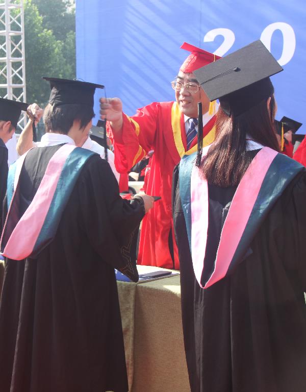 纪委书记孙黎明为毕业生颁发毕业证书并拨流苏