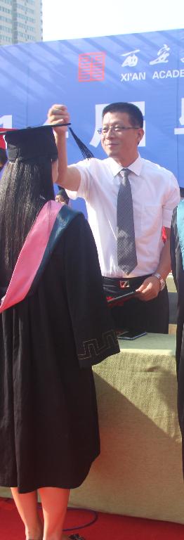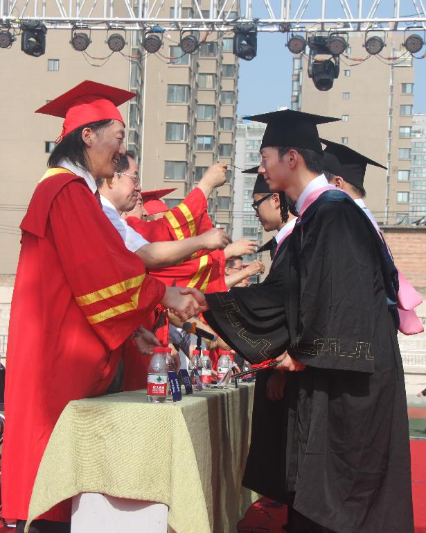 党委副书记王晓为毕业生颁发毕业证书并拨流苏