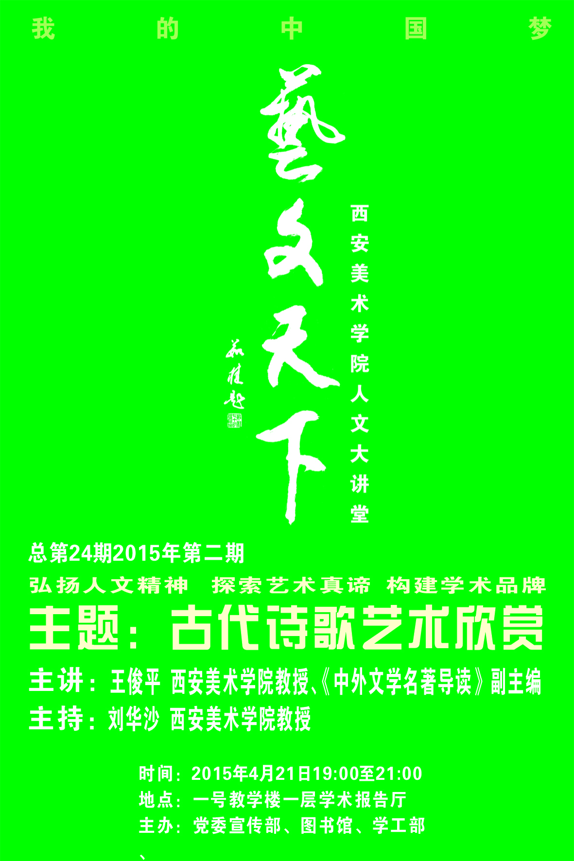 近日,中共陕西省高教工委下发《关于表彰2015全省高校校园文化建设优秀成果的通报》(陕高教宣〔2015〕9号),我院申报的《以文化人,以美育人——西安美术学院“艺文天下”校园文化大讲堂》获全省高校校园文化建设优秀成果二等奖。