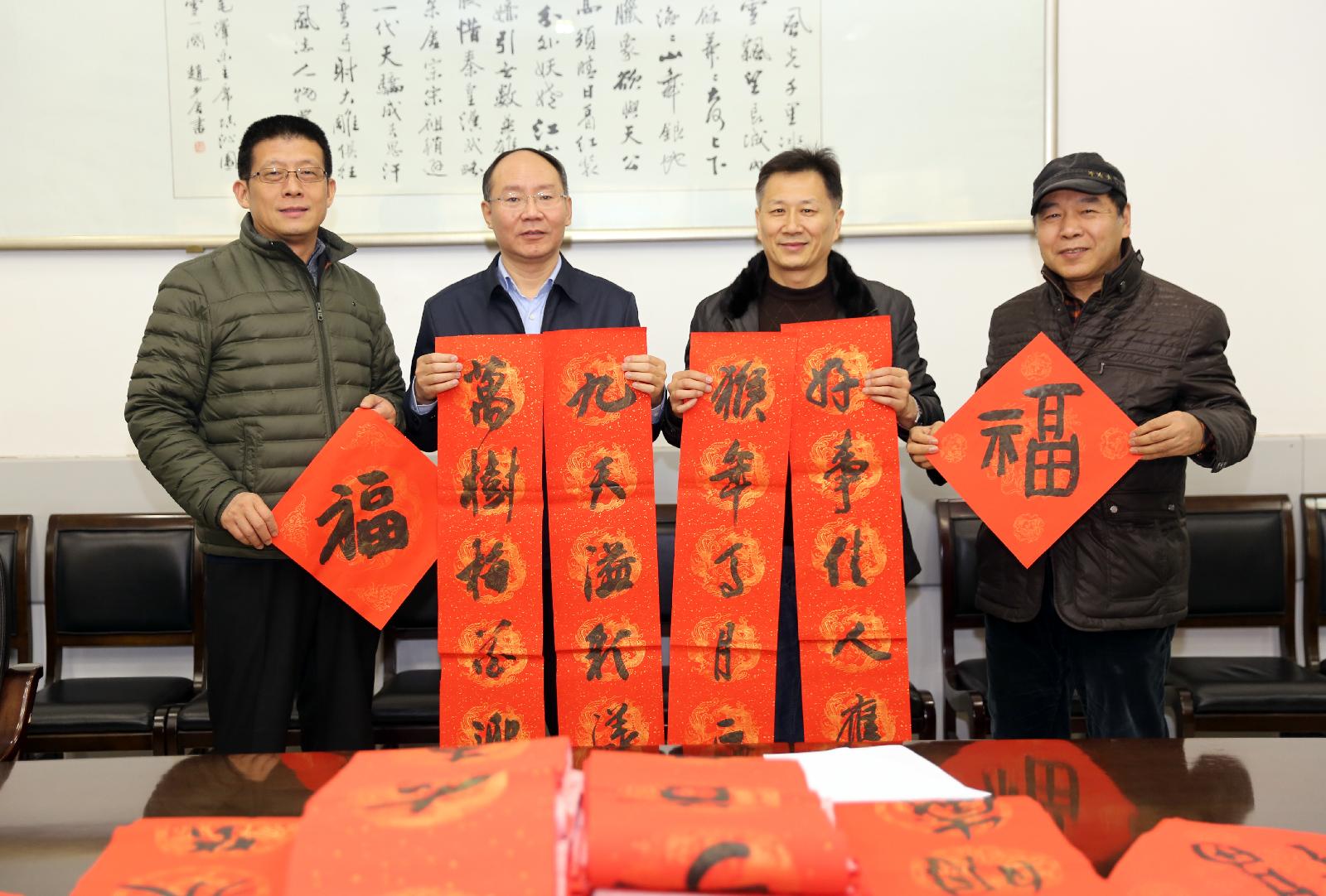 为认真践行习近平总书记文艺座谈会讲话精神,高扬社会主义核心价值观的旗帜,由《人民铁道》报社、全国铁道团委、中国铁路文联发起的大型铁路公益活动“迎春运·送万福”活动中,我院作为此次活动的主要参与单位,在即将放寒假的前夕,组织王家春、郭线庐 韩宝生、贺荣敏、姜怡翔、宋晓峰、吴昊、李青、王保安、刘西洁、李玉田、杨季、赵晓荣、韩莉、贺文荣、景有民、夏慧堂、张明生、王珊、陈庆华、侯晓春、雷宏发、赵云雁、付小青、李璐、刘乔阳、王超等30多名书画家书写了400幅春联和200对福字。
