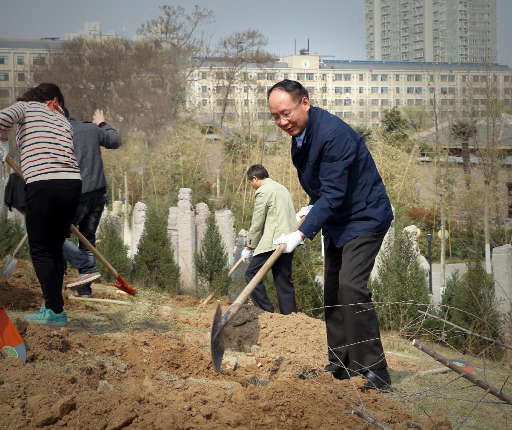 为激发学院师生爱绿护绿、爱林造林的感情,进一步为校园增添新的生机与活力,我院总务处组织学院教职工以实际行动绿化自己的家园,为校园增添一抹绿色。3月18日下午,学院党委书记王家春,副书记赵万东,院长助理李敏参加植树活动。我院有关部门负责人以及教师等50余人参加活动。
