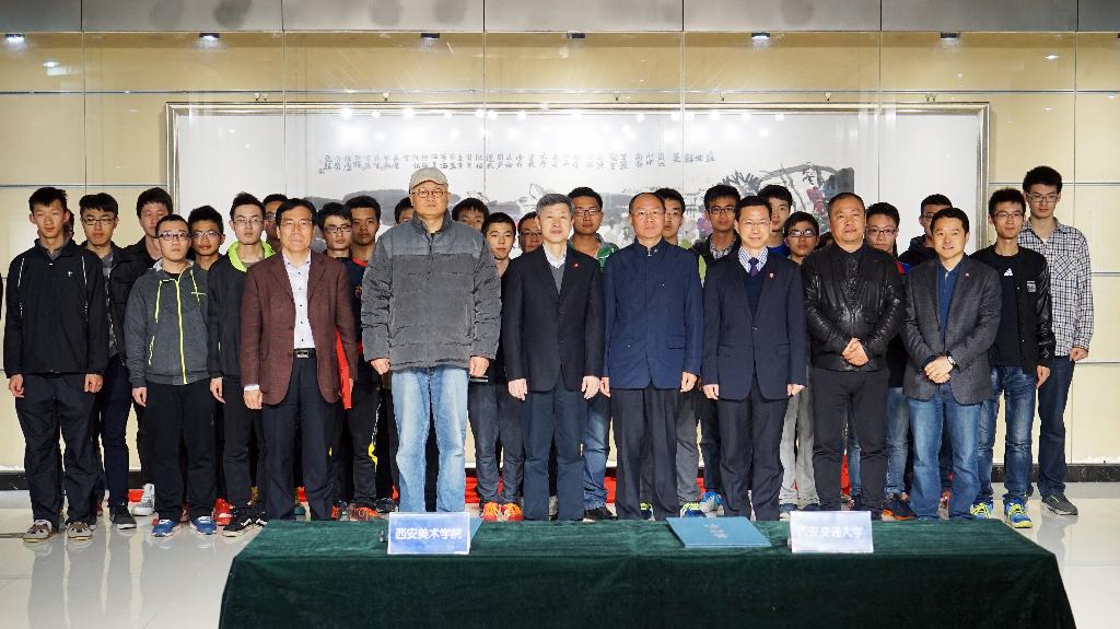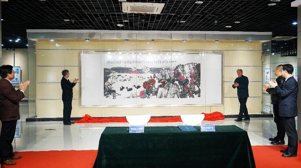 赠送仪式在西安交通大学博物馆举行,姜怡翔代表我院与西安交通大学副校长郑庆华签订了赠送协议,王家春与张迈曾共同为画作揭幕。张迈曾代表西安交通大学向我院赠送纪念品。