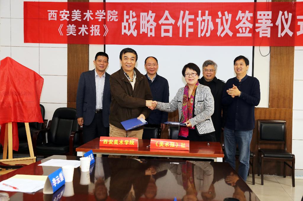 4月7日上午,我院与《美术报》正式签订战略合作协议。学院党委书记王家春,院长郭线庐,《美术报》副主编张谷风、副社长蒋跃等一行四人出席签约仪式。党委副书记赵万东主持签约仪式。