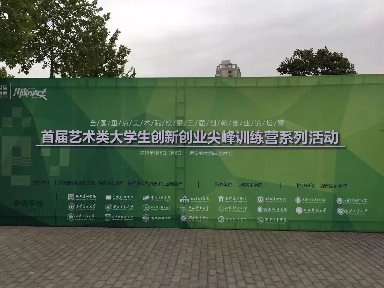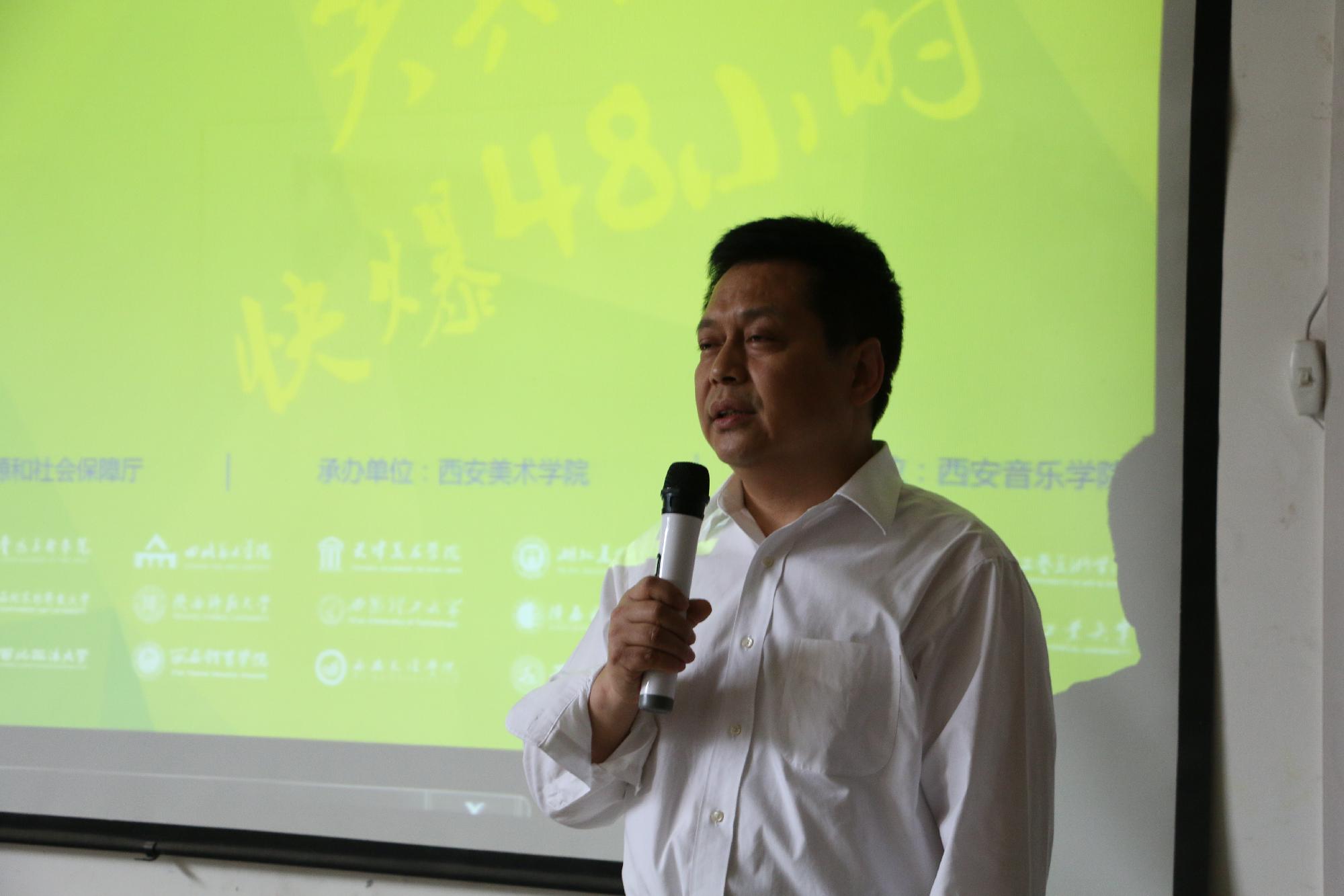 5月6日,由中共陕西省委高教工委、陕西省教育厅、陕西省人力资源和社会保障厅主办,西安美术学院承办、西安音乐学院协办的全国首届艺术类大学生创新创业尖峰训练营在我院实验中心正式开营。副院长李四军出席开营仪式并讲话,来自省内外22所兄弟高校的72名学生参加了此次训练营。各参训院校的带队老师、我院文创教学中心的成员一起参加了开营仪式。