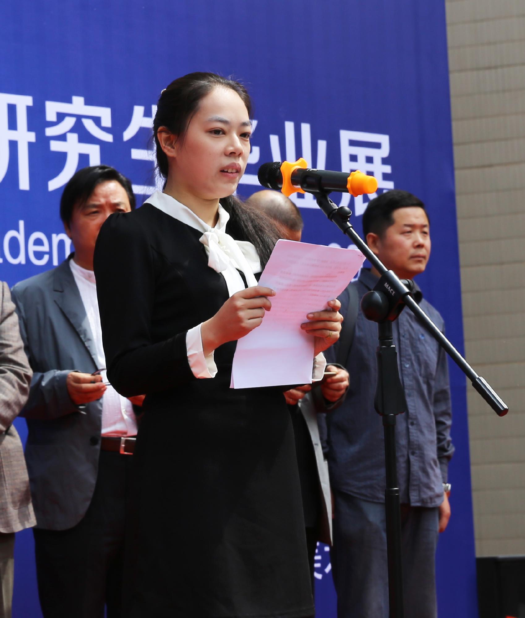 杨晓阳在讲话中祝贺同学们取得的优异成绩并预祝本届硕士毕业研究生作品展取得圆满成功。导师代表设计系刘时燕和毕业生代表服装系钱茵同学都做了简短发言。