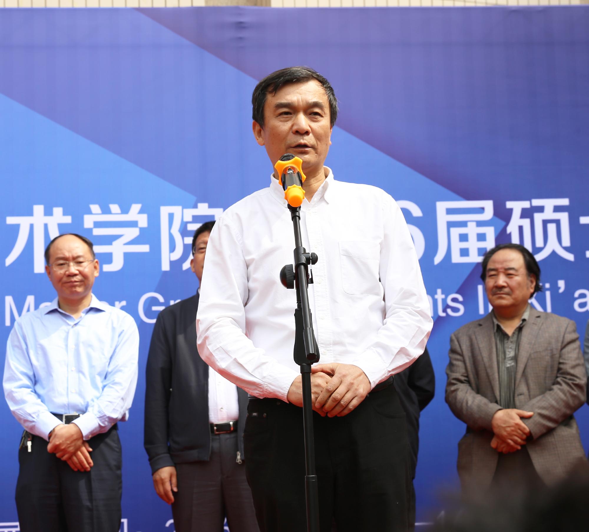 王家春宣布“西安美术学院2016届硕士研究生毕业作品展”开幕。