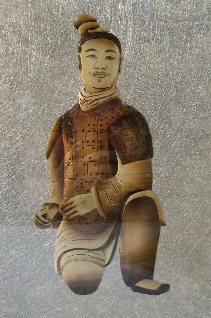 作品《大雁塔》和《跪射俑》的创作原型大雁塔和兵马俑是古都西安和陕西省的标志性象征,也是中华民族伟大智慧结晶的代表。此作品用精妙的麦秆画技艺——将麦秆经过:“熏、蒸、漂、刮、推、烫、以及剪、刻、编、绘”等多道工序,依麦秆本身的光泽、纹彩和质感,根据大雁塔和跪射俑的创作设计进行剪裁、粘贴而成。前后从构思、设计、创作,日夜赶制七天完成100幅作品。作品光泽透亮、栩栩如生,给人一种古朴自然,高贵典雅之感,并且材料环保,是中国的非物质文化遗产。