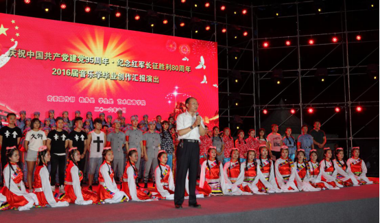 西安美术学院的前身是西北军政大学艺术学校,作为一个具有革命传统的红色高等院校,西安美术学院伴随着新中国一起成长。艺术教育学院音乐学专业师生大胆构想,把毕业创作和学院的红色背景结合起来,把讲台和舞台结合起来,把教学和展演实践环节结合起来,形成一个“辉煌历程”系列教学展演活动。去年以“黄河大合唱”为主题进行创作汇报展演获得社会广泛认可,今年选题的出发点是长征组歌原作的改编和二度创作,充分展示音乐教育教学成果,同时庆祝建党95周年和长征胜利80周年,弘扬正能量,结合“两学一做”学习对全院师生进行一次形象的爱国主义教育。
